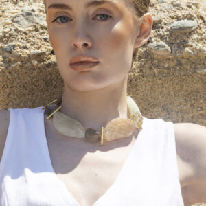 Ορειχάλκινο κολιέ με επίχρυση αλυσίδα 24k και τσιπς ημιπολύτιμων λίθων.
