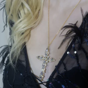 24Κ Επιχρυσωμένο κολιέ από 925 ασημένια αλυσίδα με λευκά ημιπολύτιμα Ζιργκόν.