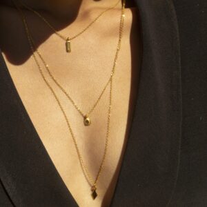 Ορειχάλκινο κολιέ με επίχρυση αλυσίδα 24k και τσιπς ημιπολύτιμων λίθων.