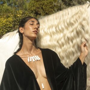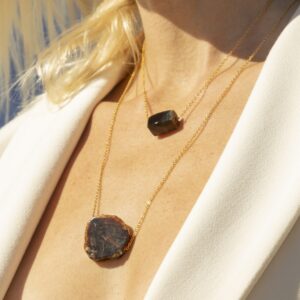 Ορειχάλκινο κολιέ με επίχρυση αλυσίδα 24k και τσιπς ημιπολύτιμων λίθων.